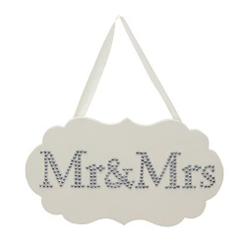 Tags: Amore MDF Plaque with Crystals 28cm x 16cm - MR & MRS