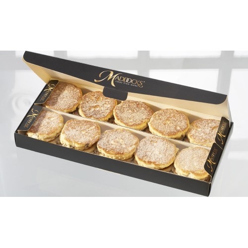 Maddocks Welshcakes are round spicy cakes, made using wheatflour, margarine, vine fruits, free range eggs, sugar and a hint of nutmeg and seasoning.