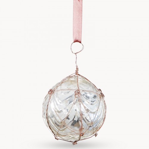 Eastland Wirework Christmas Decoration Beautiful silver rippled bauble with rustic wire detail, perf..