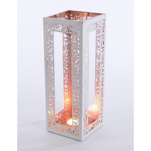 Description PEACH FIZZ. White/Copper Inside.12X12X31CM OBLONG VOTIVE