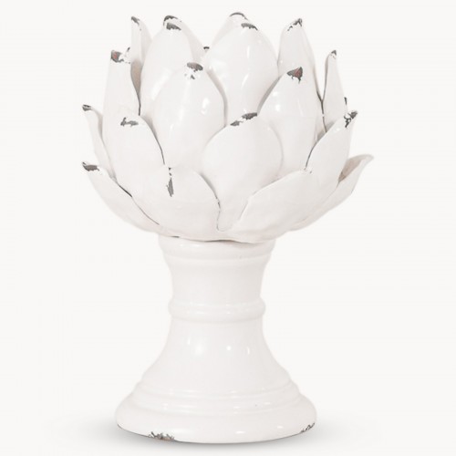 Our distressed white artichoke looks lovely as it is - but it's really a candle holder. Drop in a simple white church candle and you can instantly add a touch of elegance to any room.
