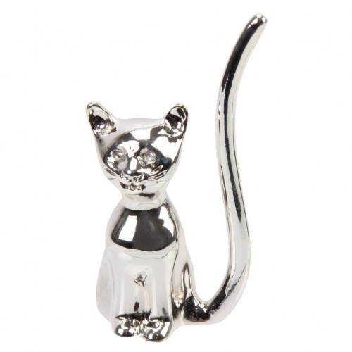 For discerning cat lovers everywhere. This cute little cat will keep all your rings safe and handy when they`re stacked up on his tail. Silver plated and Presented in an attractive gift box.